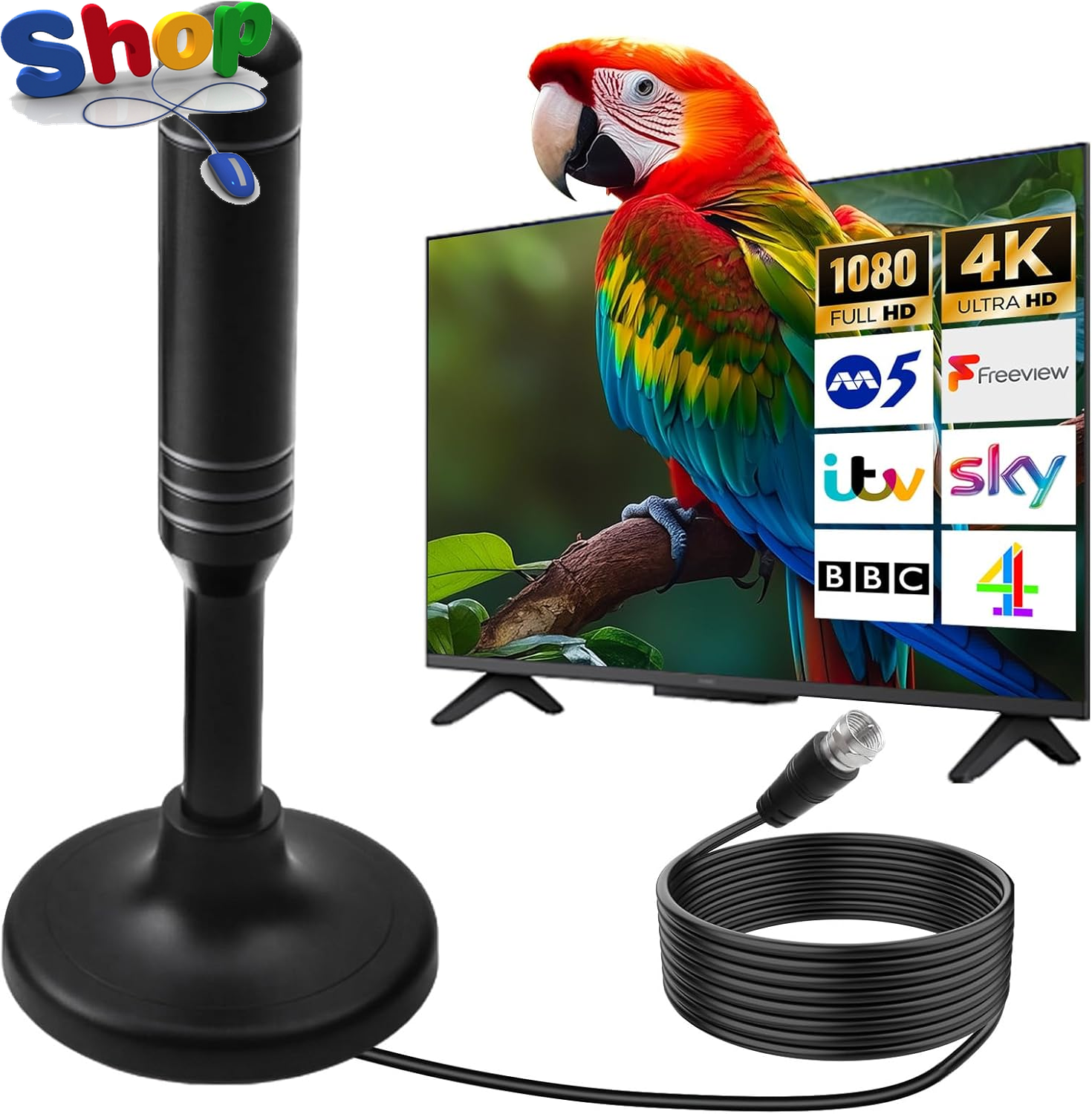 2026 Indoor TV Aerial-Freeview Aerial with 360° Signal Reception, Magnetic Base,