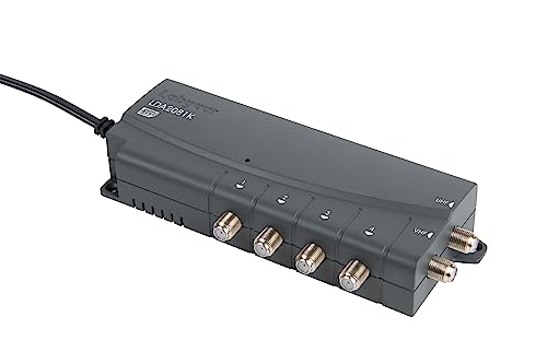 SLx TV Signal Booster Aerial Amplifier, 4 Way Signal Distribution Amplifier with F-Type Connections, 4G & 5G Filtering, Indoor TV Aerial, HD TV/FM/DAB, Auto Line Powering, Improved Energy Efficiency