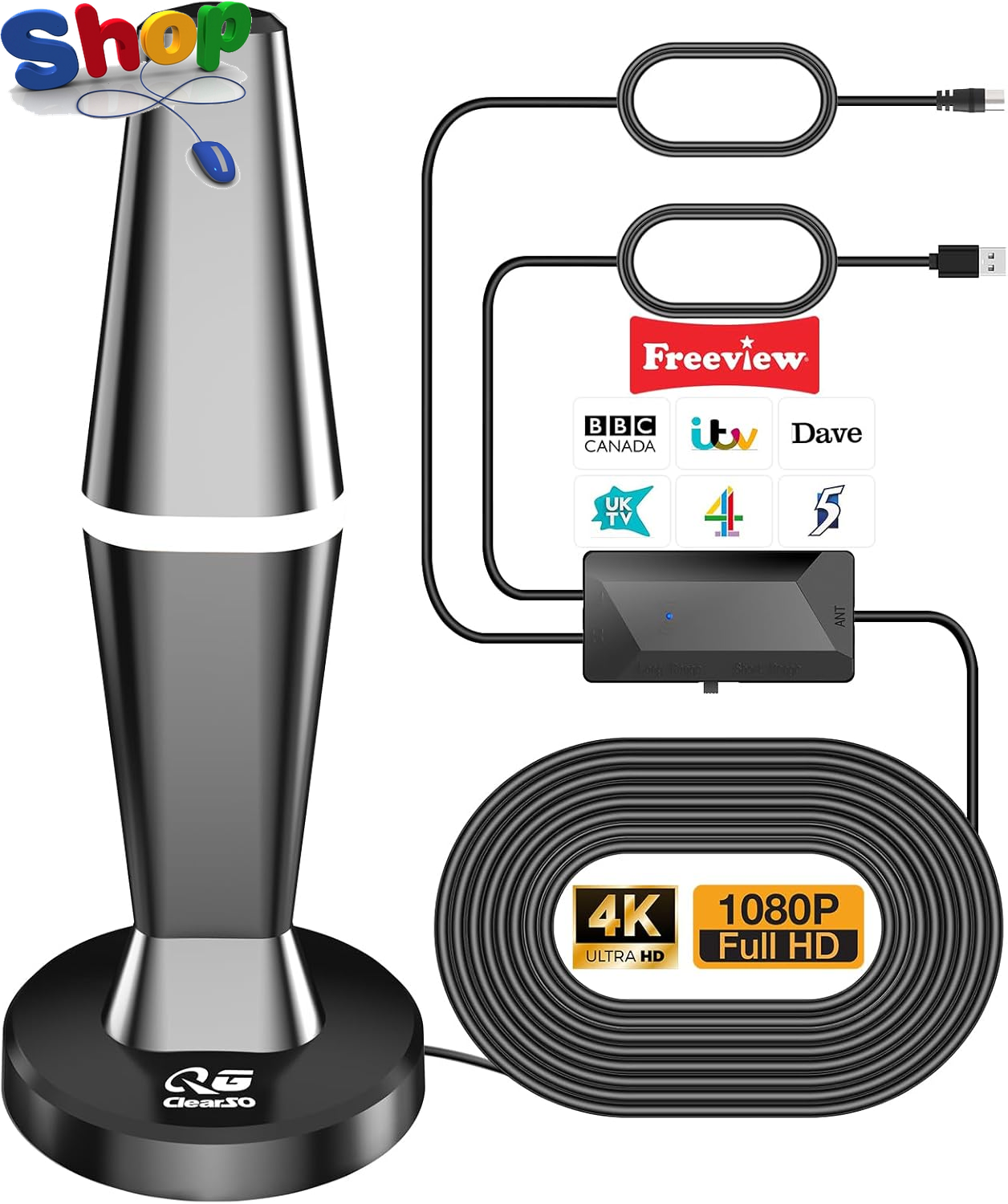 Indoor TV Aerial with Strong Signal UK, Freeview Aerial, Supports HD 4K 1080P Ot