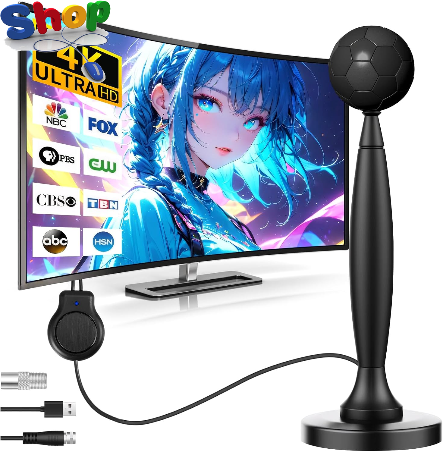 2025 Upgraded Indoor TV Aerial - High Gain Freeview HD 300+ Miles Long Range with Magnetic Base & 6.6ft Coax Cable for 4K 1080P Smart TVs