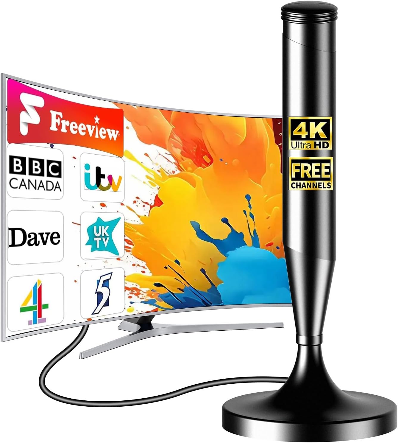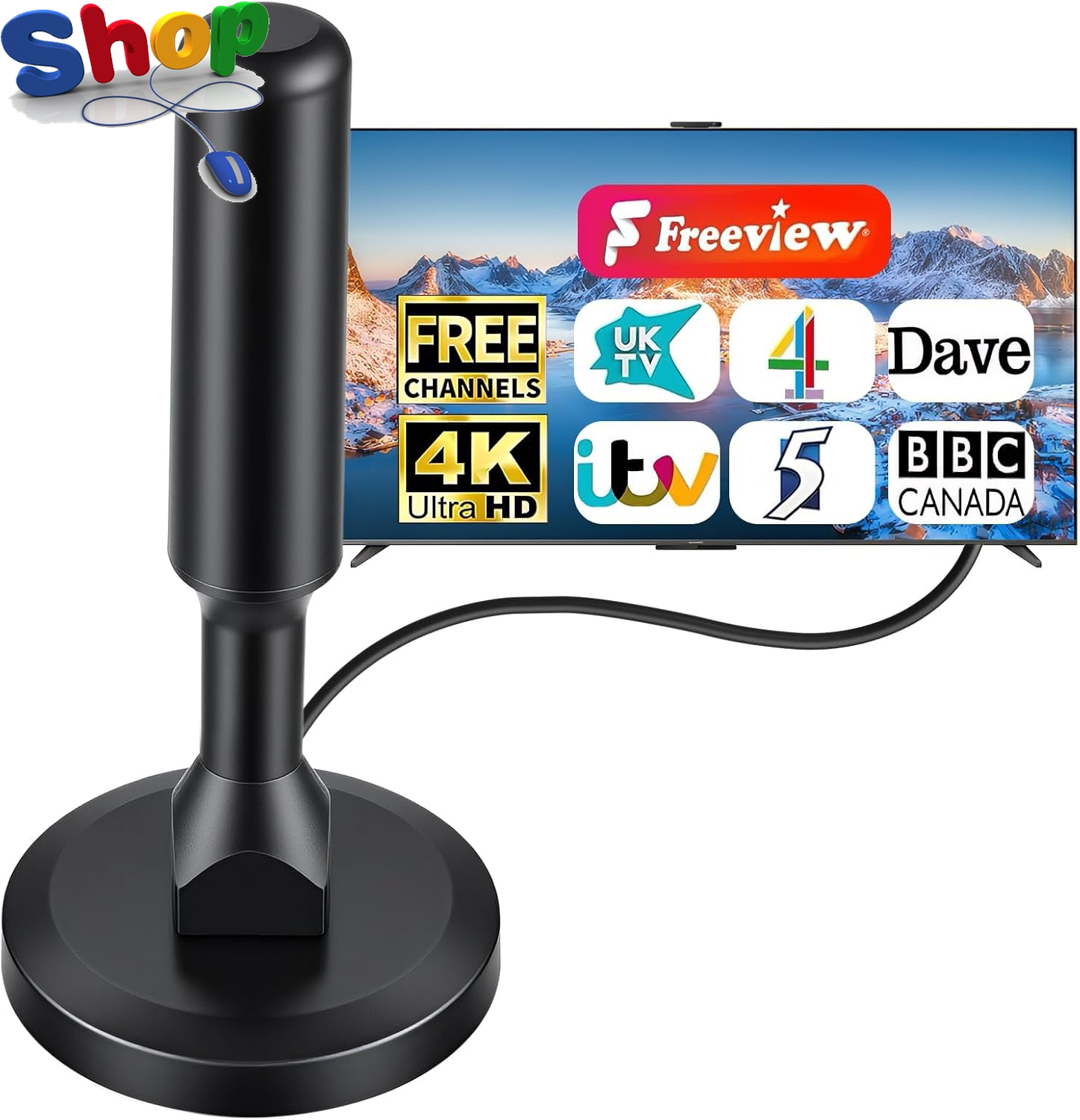 Indoor TV Aerial - Freeview Antenna with Signal Booster, Magnetic Base, Portable Design for 4K/1080P HD Channels