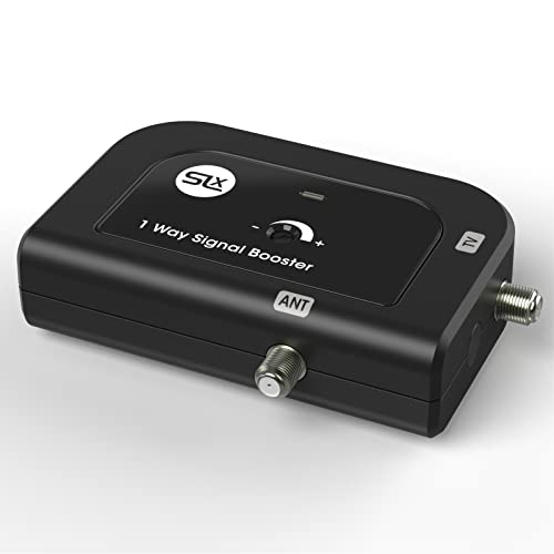 SLx TV Signal Booster Aerial Amplifier, 1 Way Signal Distribution Amplifier with Coax Connections, 4G & 5G Filtering, Indoor TV Aerial and Freeview, Variable Gain Control