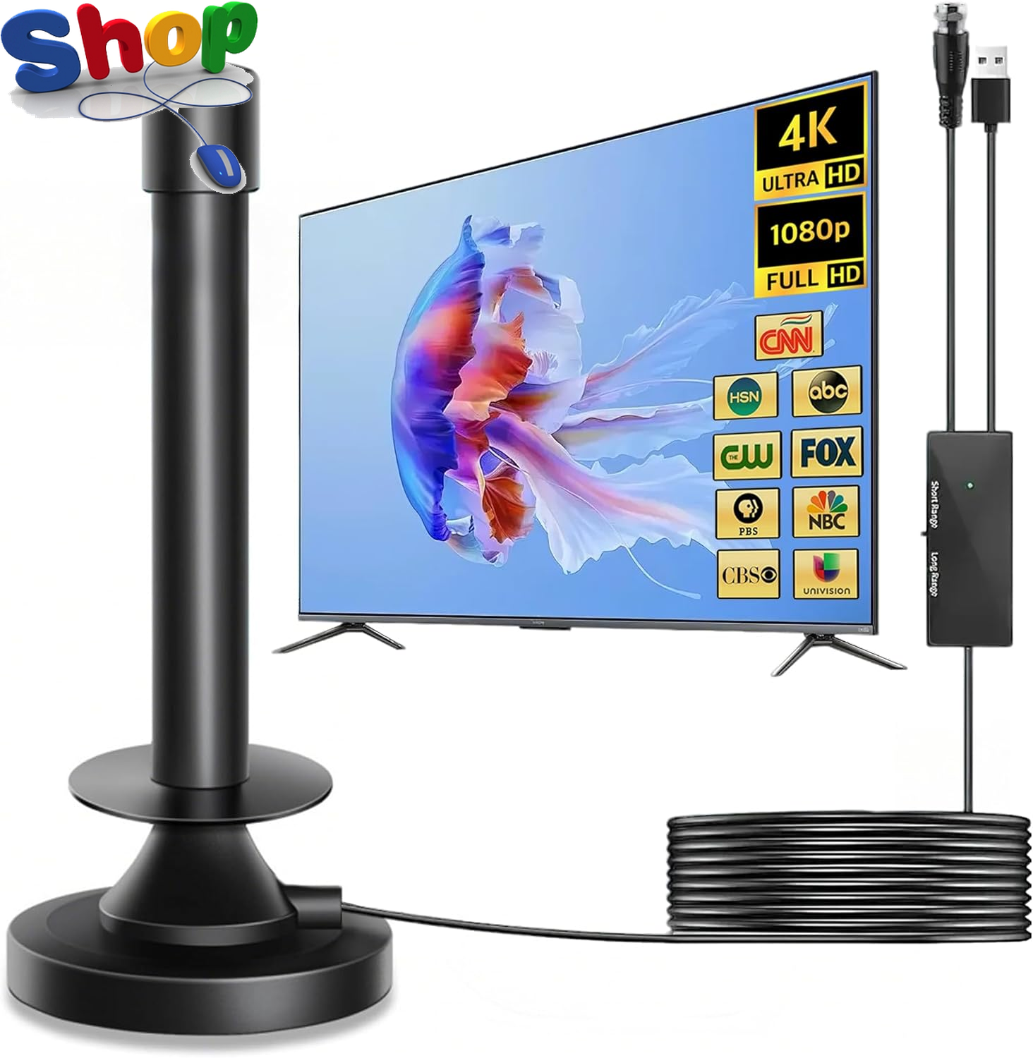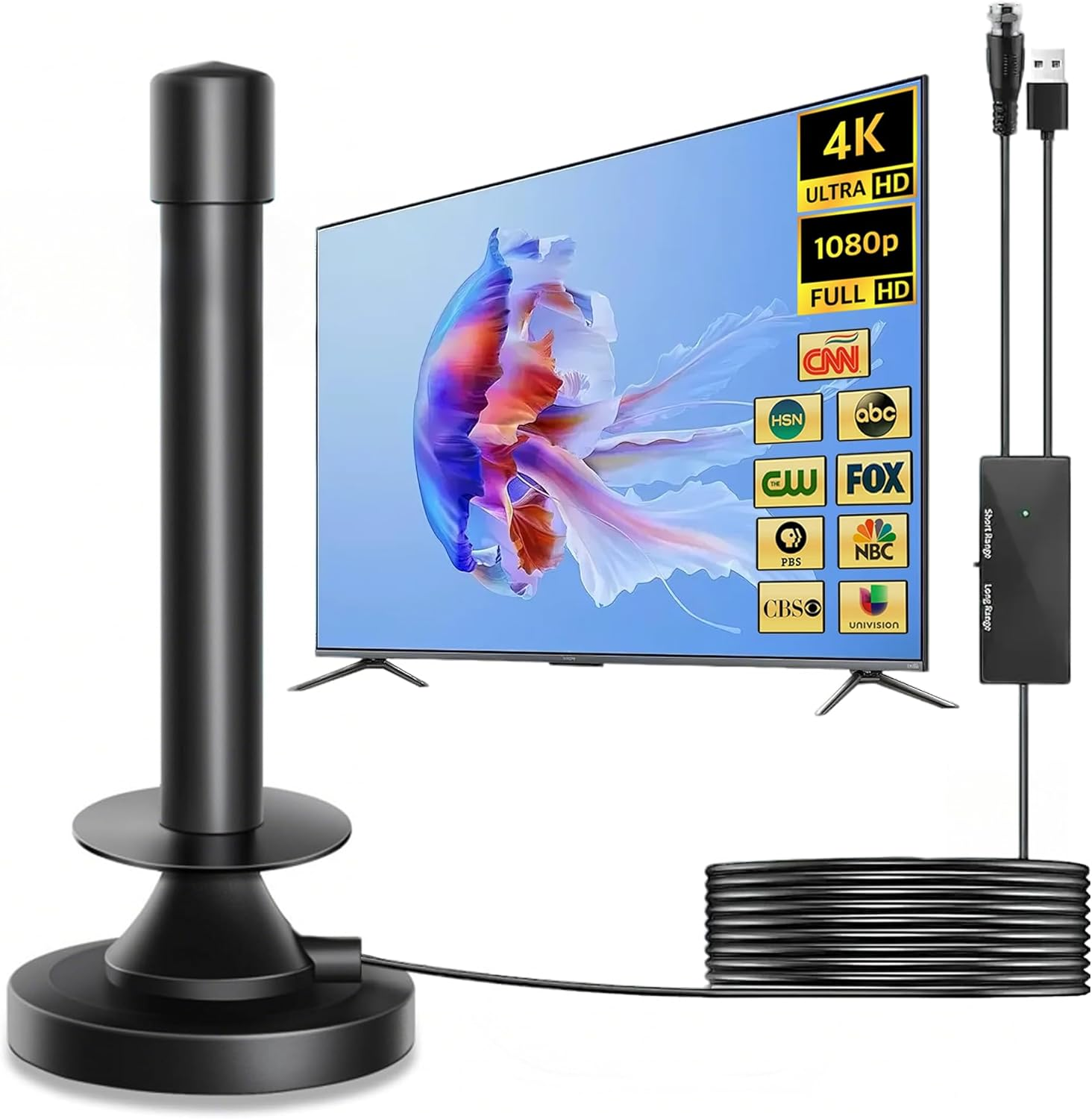 2025 Upgrade TV Aerial, Indoor TV Aerial HD for Smart TV with Signal Booster, In