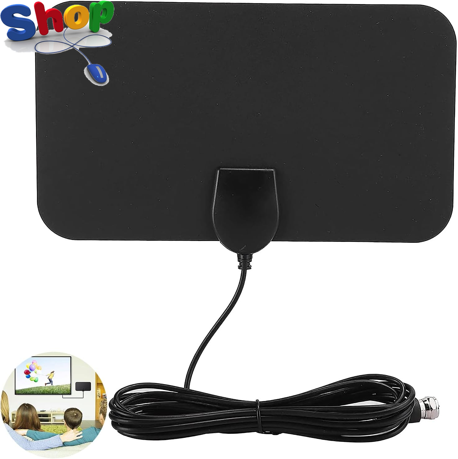 MILIWAN TV Aerial Indoor TV Aerial - 80 Miles Digital HDTV Antenna Freeview TV Antenna VHF UHF 4K 1080P for Local Channels Support ALL Television – 12.2 FT Coax Cable