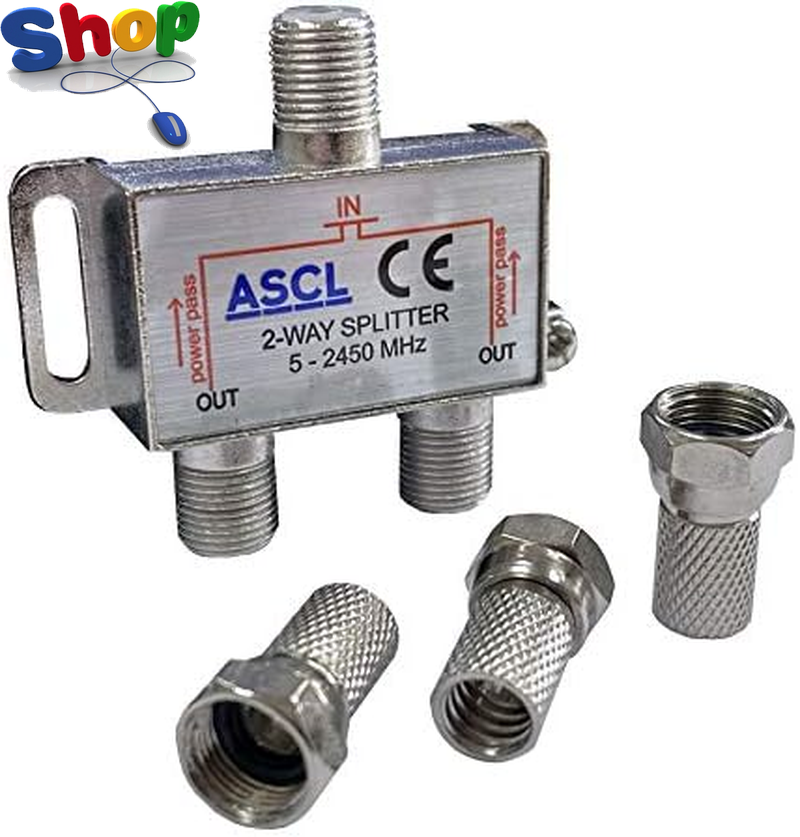 2 Way Indoor TV Aerial Splitter with F Plug - Silver