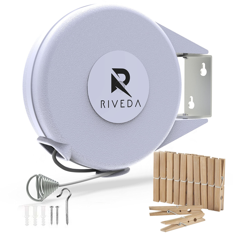 Aibulo 15m Retractable Clothesline, Outdoor Indoor Retractable Washing Line with Fixing Kit, Easy Install, Space-Saving Laundry Drying Solution
