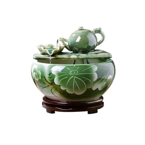 Ceramic Table Fountain Circulating, Indoor Water Fountain Decorations, with Circulation System, for Home Decoration, Office Furnishings, Living Room(Green)