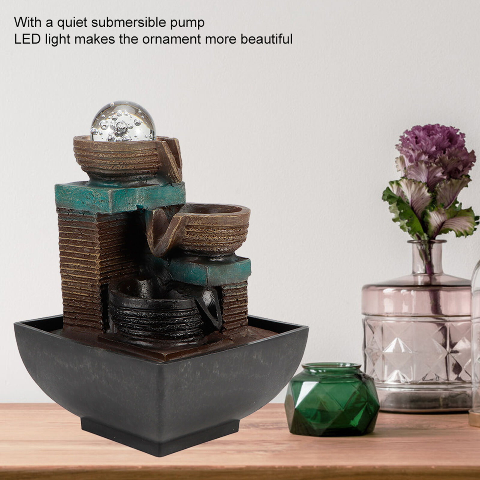US Plug 110V Innovative Resin Indoor Tabletop LED Water Fountain Ornament F OU
