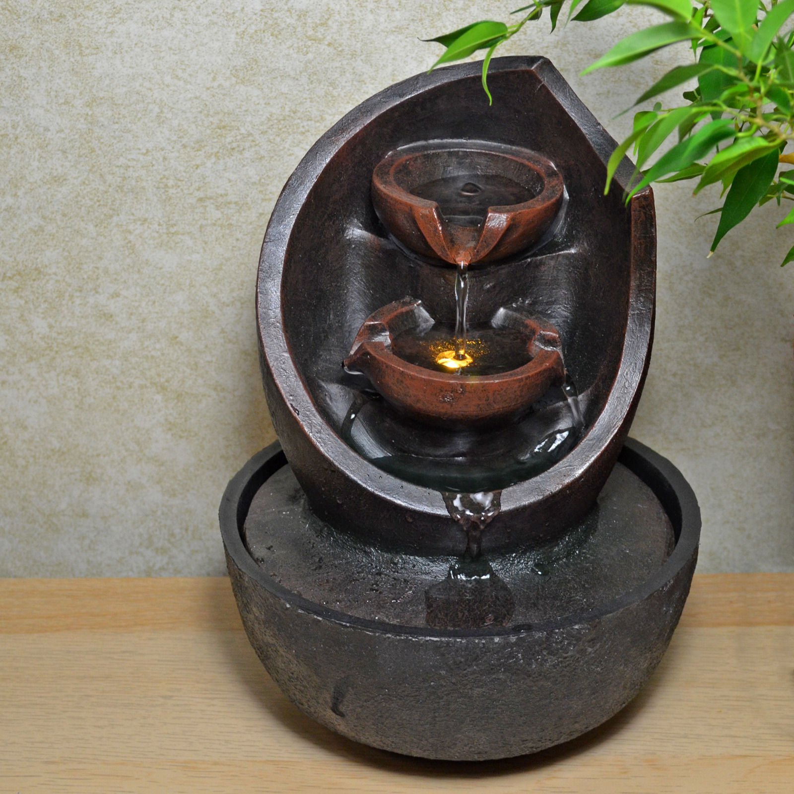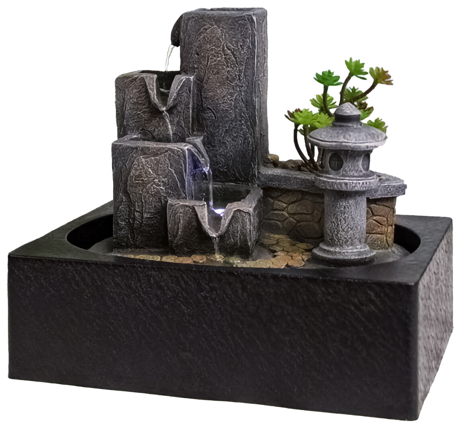 Indoor Water Fountain Tranquility Zen Waterflow Feature Home LED Decor Polyresin
