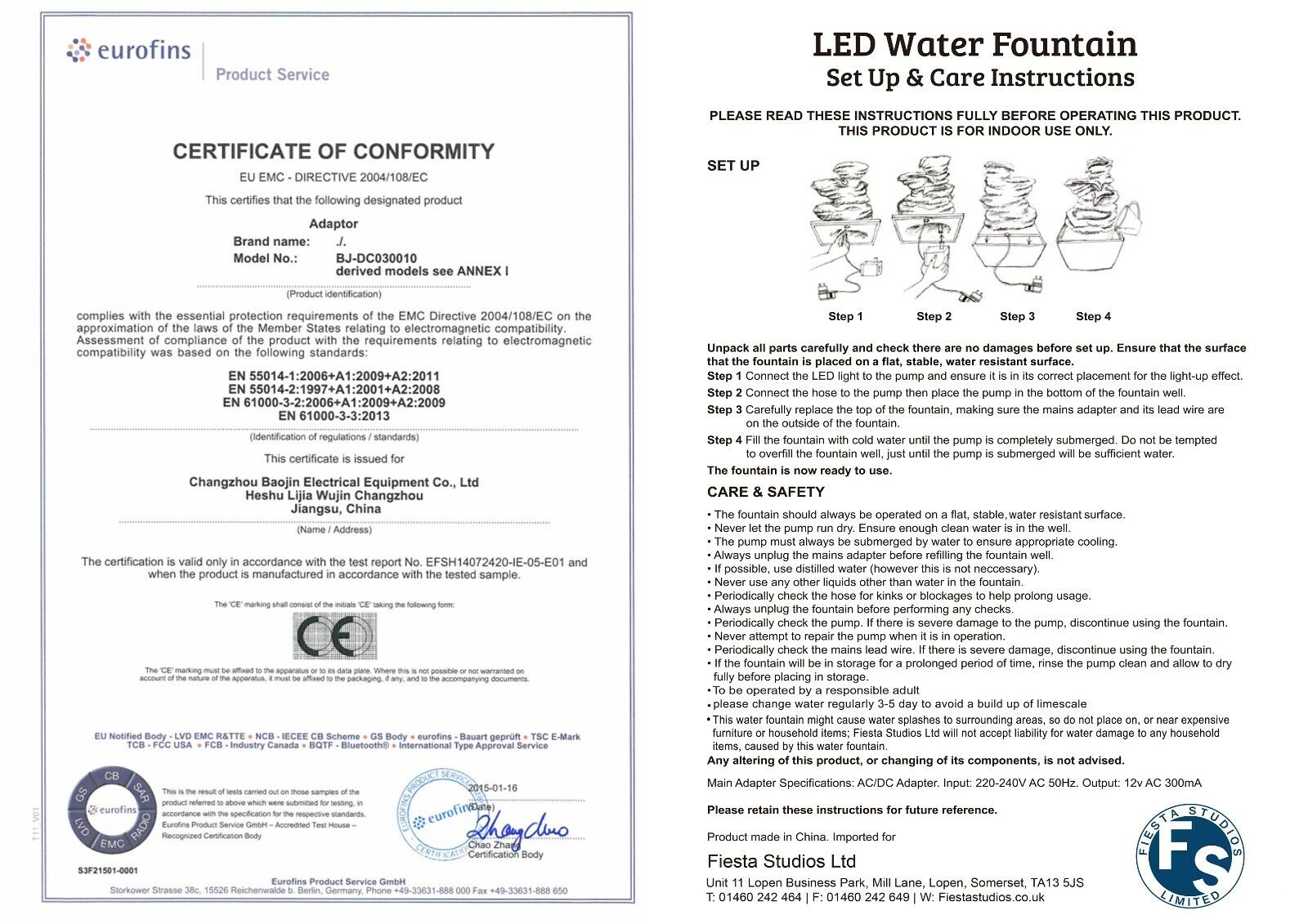 Indoor Water Fountain Mini Lovely Labs Home LED Beautiful Decor 18cm