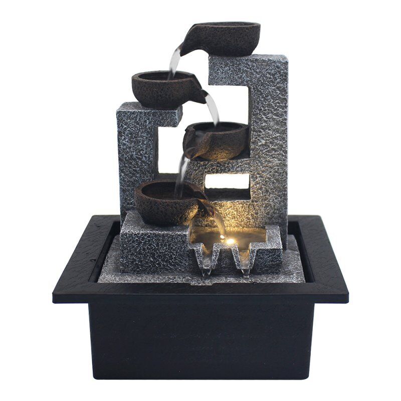 Bucket Cascade Indoor Water Fountain With LED Light Home Decor Gift H17cm 40326