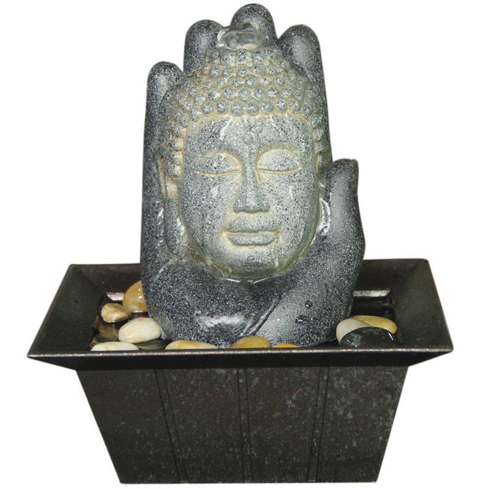 Buddha and Hand Tabletop Indoor Fountain Water Feature with Pebbles