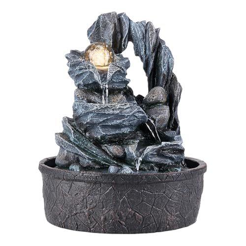BTGGG Indoor Water Fountain with Rolling Ball LED Light, Indoor Water Feature Table Top Waterfall with Cascading Mountains, Desktop Fountains for Decoration Relaxation, 3 Pin UK Plug Included