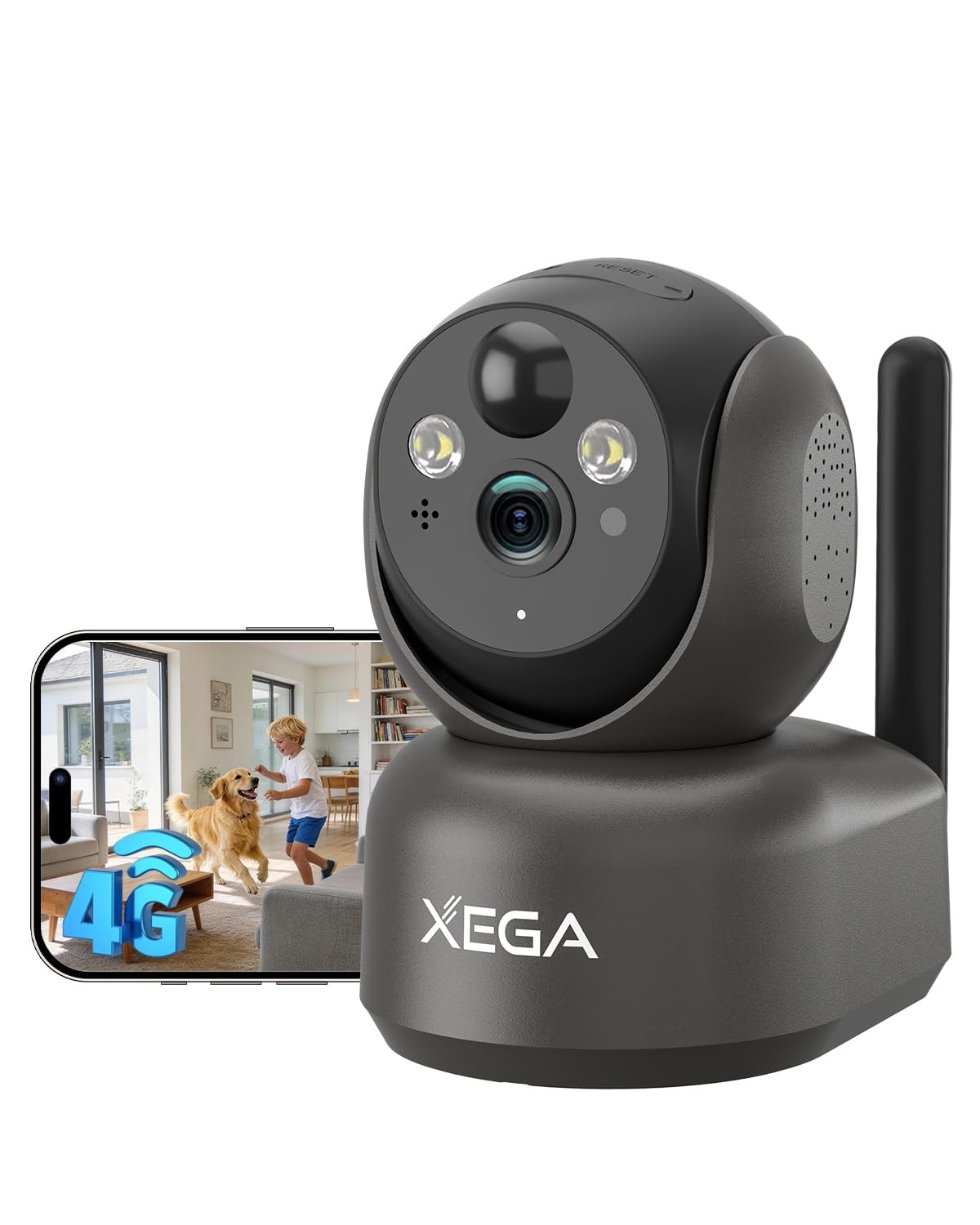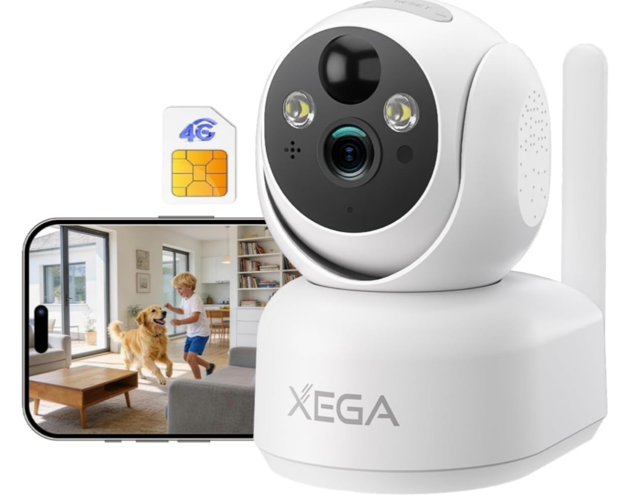 Xega 4G CCTV Indoor Security Camera Wireless-7800mAh Battery, 2K Super HD PTZ Camera with SIM Card, No WiFi, PIR Motion Detection, Color Night Vision, Cloud & TF Card Storage, IP65