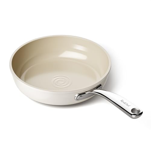 Redchef Ceramic Non Stick Egg Pans 20cm, Nonstick Frying Pan, 8 inch Cooking Skillet with Stay Cool Handle for Induction, PTFE & PFAS & PFOA Free, Oven Safe (Beige)