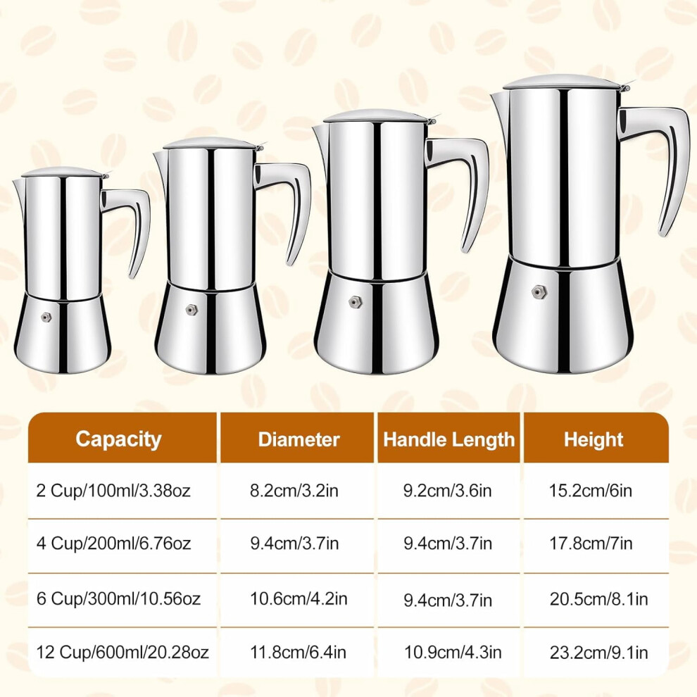 Stainless Steel Moka Pot for Induction, Espresso Maker Fast Heating Italian Coffee Maker Safety Valve, Convenient & Practical for Home Brewing (Gift f