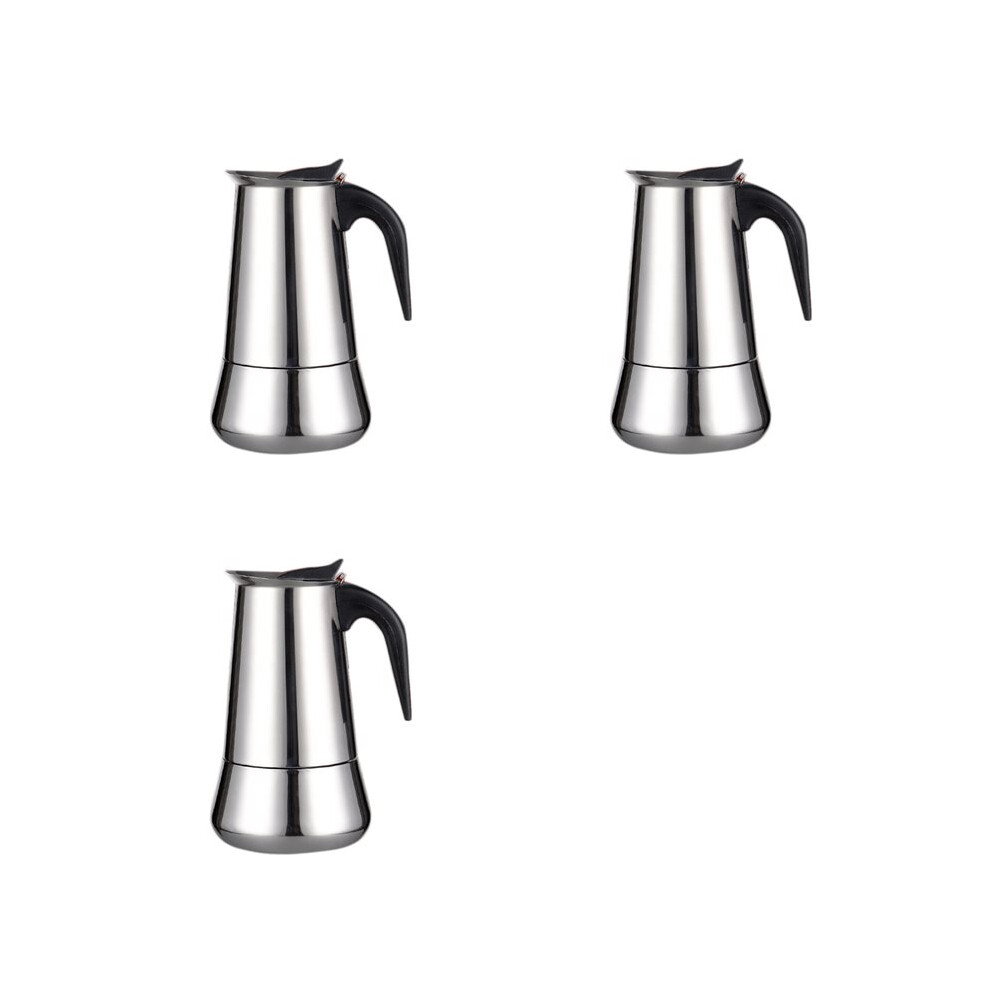 3X Stainless Steel Induction Stovetop Espresso Maker , Italian Style Coffee At Home with Moka Pot in Modern Chrome