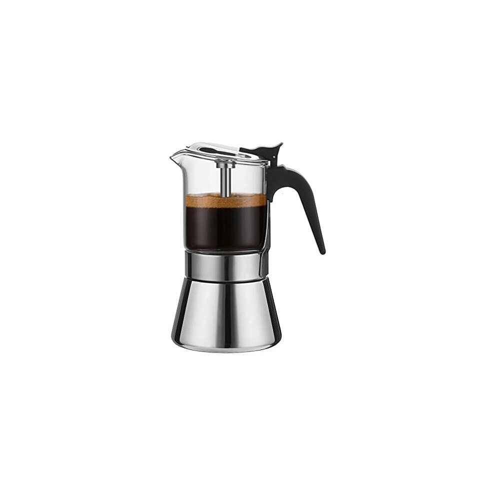 Moka Induction Stovetop Espresso Maker,Glass-Top & Stainless Steel Pot,Classic Italian Coffee Maker, 240Ml