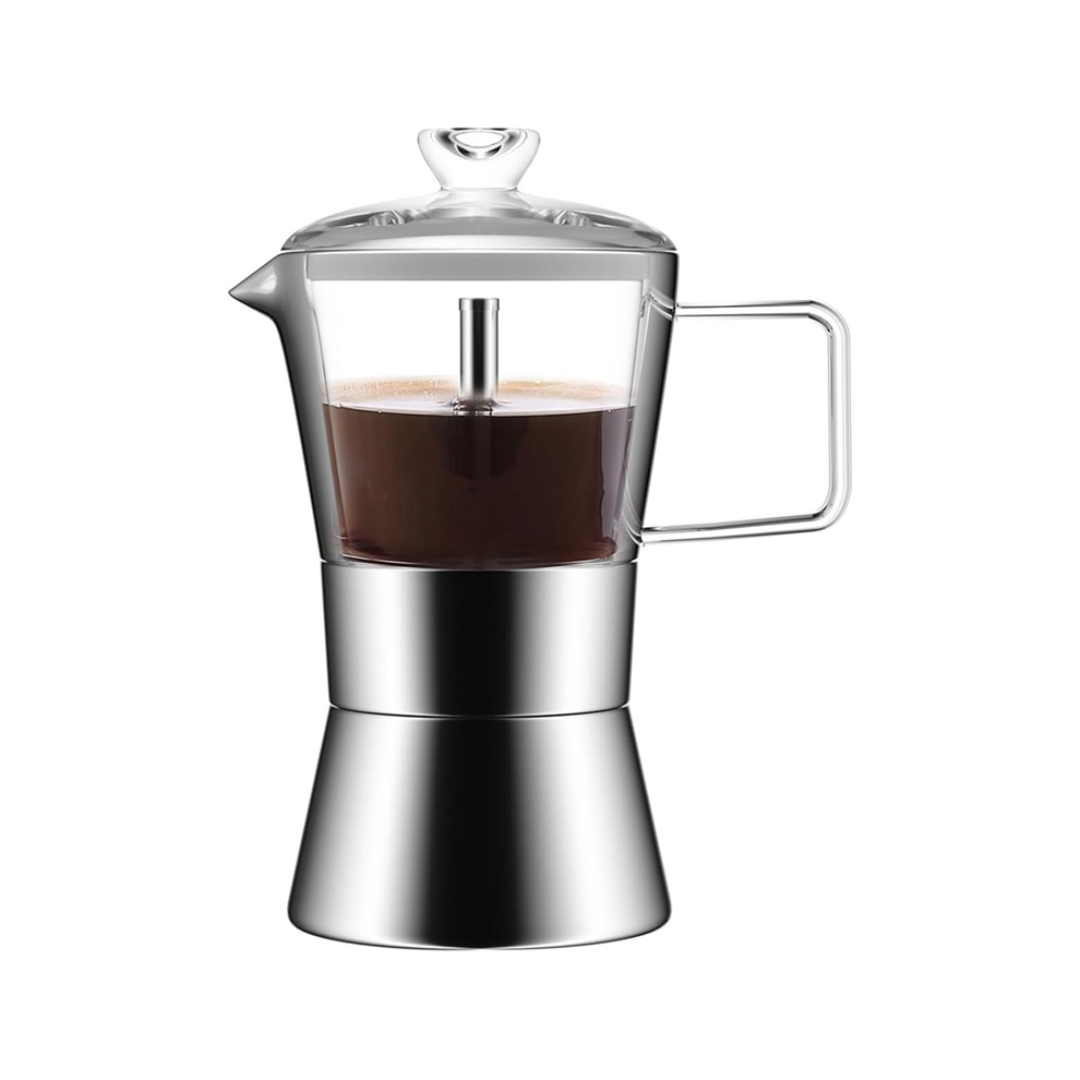 Moka Induction Stovetop Espresso Maker,Crystal Glass-top & Stainless Steel Espresso Moka Pot,Classic Italian coffee maker,240ml(6cup)