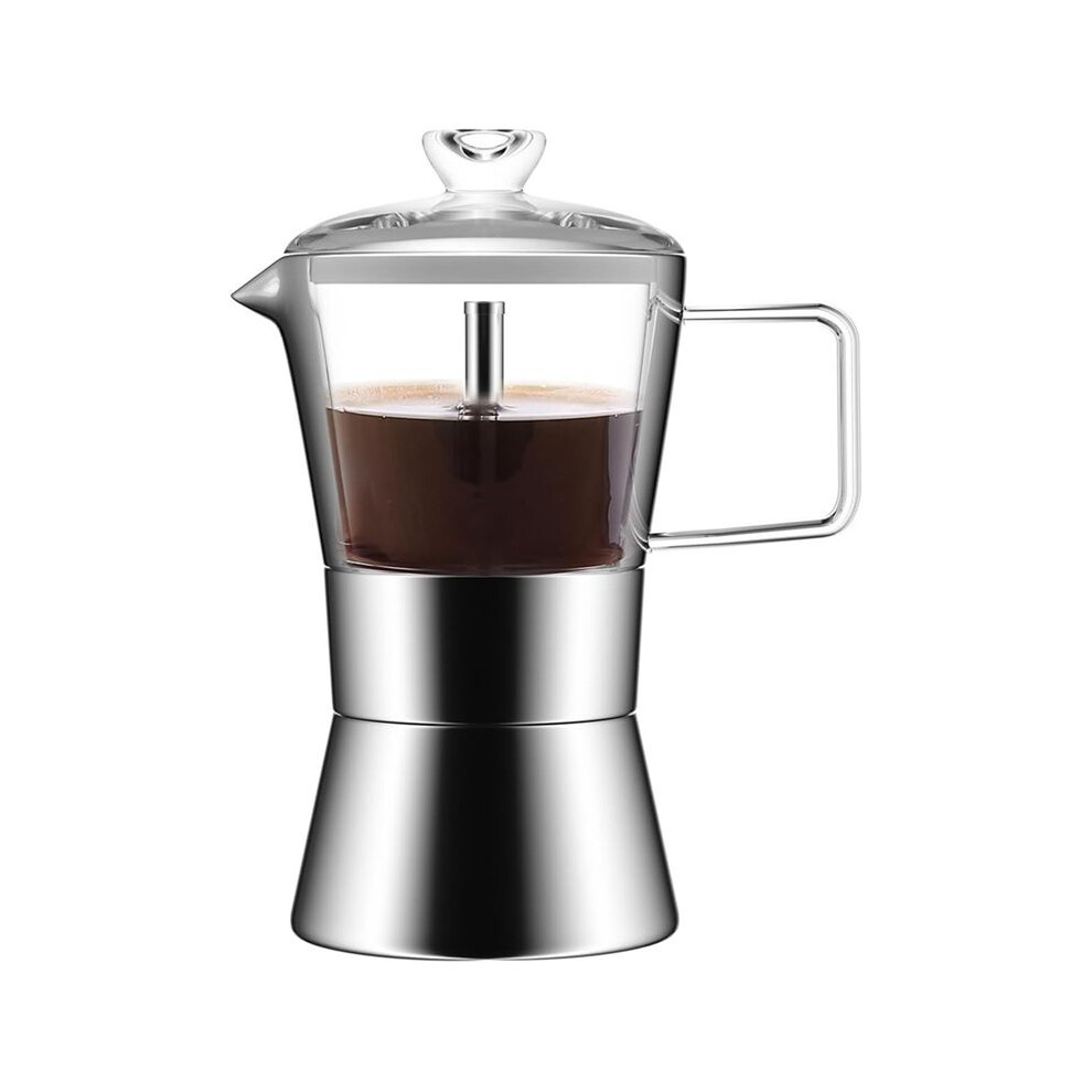 Moka Pot Moka Induction Stovetop Espresso Maker,Glass-Top & Stainless Steel Espresso Moka Pot,Classic Italian Coffee Maker, 240Ml