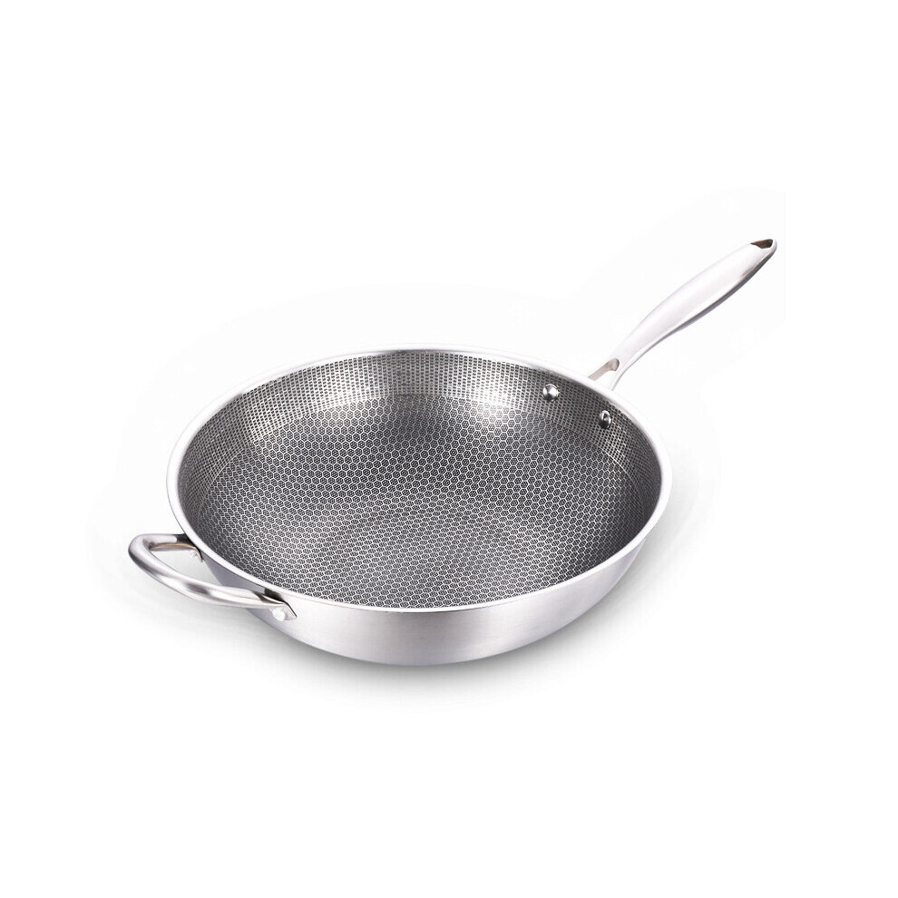 Stainless Steel Wok Thick Honeycomb Handmade Frying Pan Non-Stick Non Rusting Gas/Induction Cooker Pan Kitchen Cookware