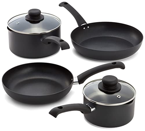 Judge Just Cook 4 Piece Pots and Pans Set Non Stick, 16cm & 20cm Saucepan with Draining Lids, 24cm & 26cm Frying Pan, Induction Hob Pan Set, Oven and Dishwasher Safe, British Made