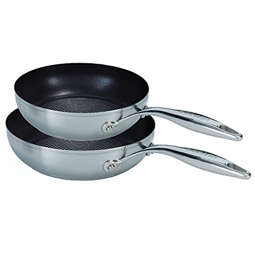 Circulon SteelShield Stainless Steel Frying Pan Set of 2 - Induction Frying Pan Set with Hybrid Non Stick 20cm & 26cm, Metal Utensil Safe and Dishwasher Safe Cookware