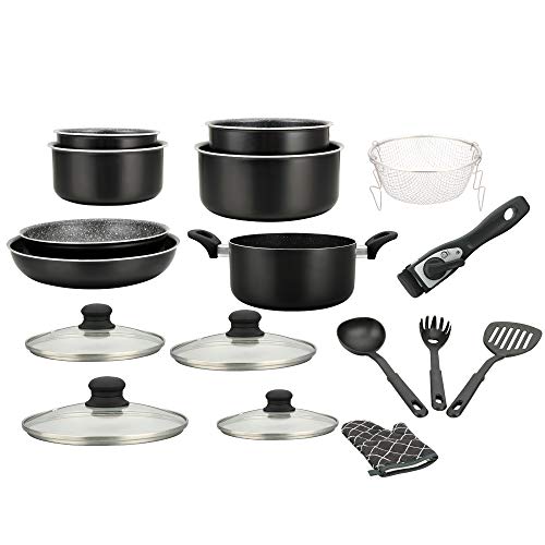 Cookware – Induction Saucepan Set – Saucepan and Frying Pan Set for All Heat Sources – 17 Piece "Special Cooking" Set with Marble Coated Saucepans and Frying Pans with Removable Handle