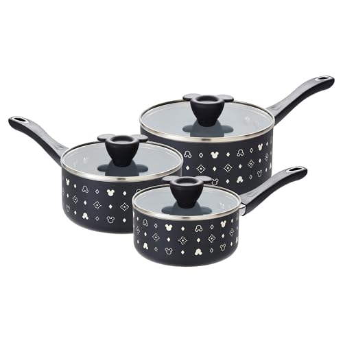 Prestige Disney Monochrome Ceramic Non Stick Saucepan Set of 3 with Lids - 16, 18 & 20cm Induction Saucepan Set, PFAS & PFOA Free, Non Toxic Cookware, Black & White