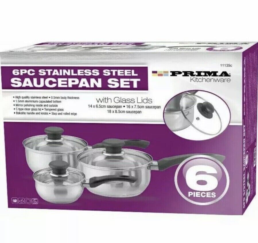 6PC STAINLESS STEEL INDUCTION COOKWARE SAUCEPAN SET PAN POT MILK KITCHEN COOK