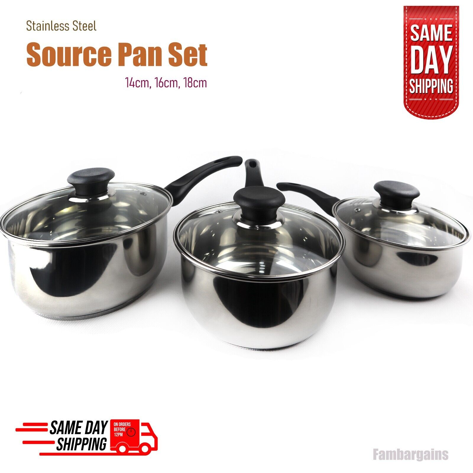 Induction Saucepan Set Stainless Steel Pan Set 3 Pieces Cooking Pots Glass Lid
