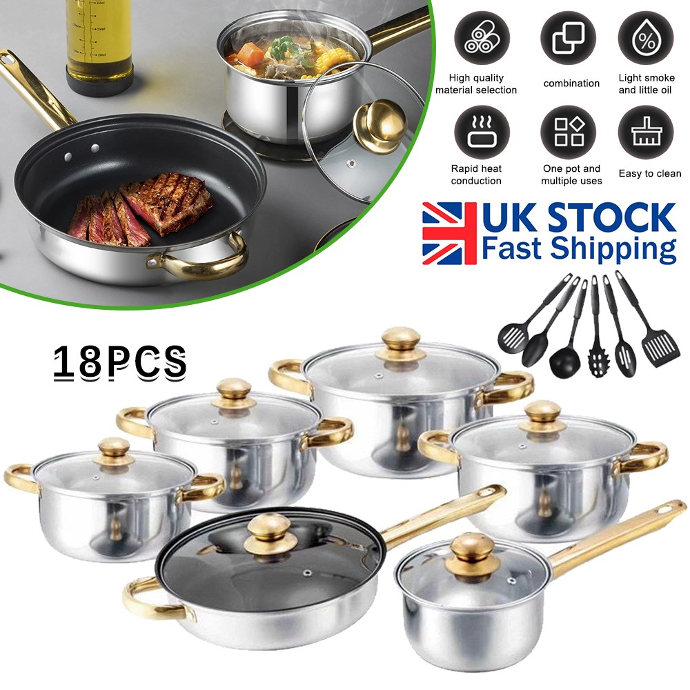 18x Induction Pan Set Saucepan Set Cookware Pot Non Stick Saucepan Glass Lid M9P
