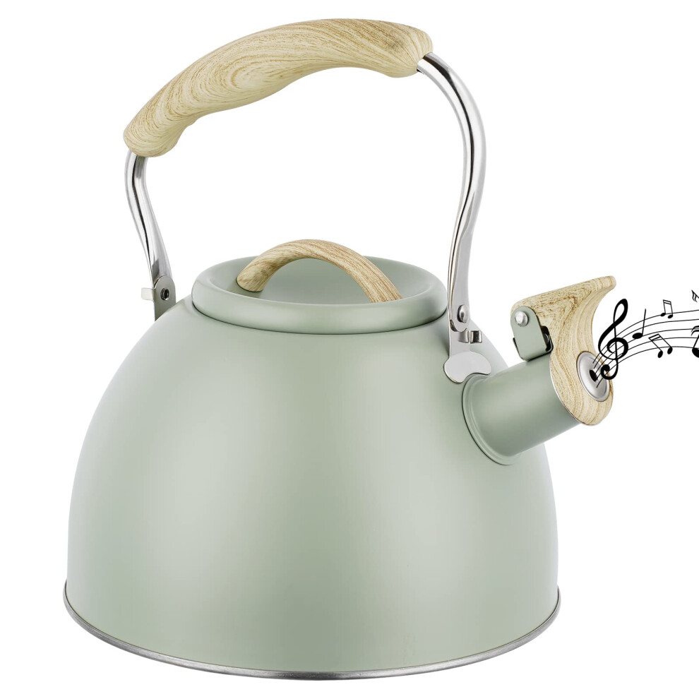 Whistling kettle, 2.5L whistling kettle, gas stove induction kettle stainless steel kettle Light green