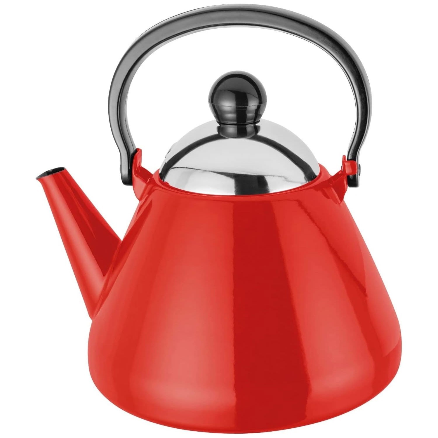 Retro Stove Top Kettle & Teapot Combined. Metallic Red & Chrome. Suitable for Ceramic - Induction Hobs
