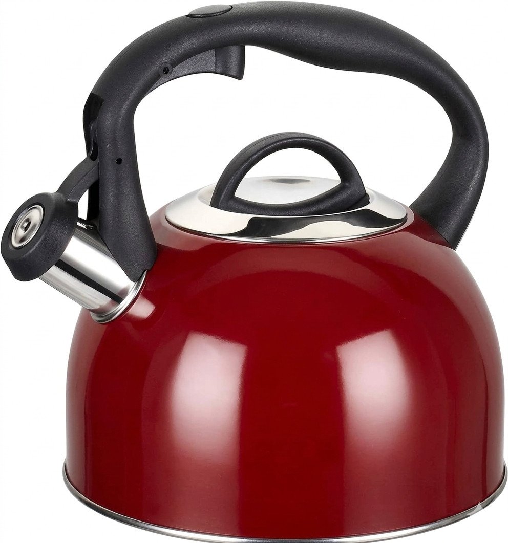 Maischou 2.5L Whistling Tea Kettle Stainless Steel Red Stove top Induction Gas