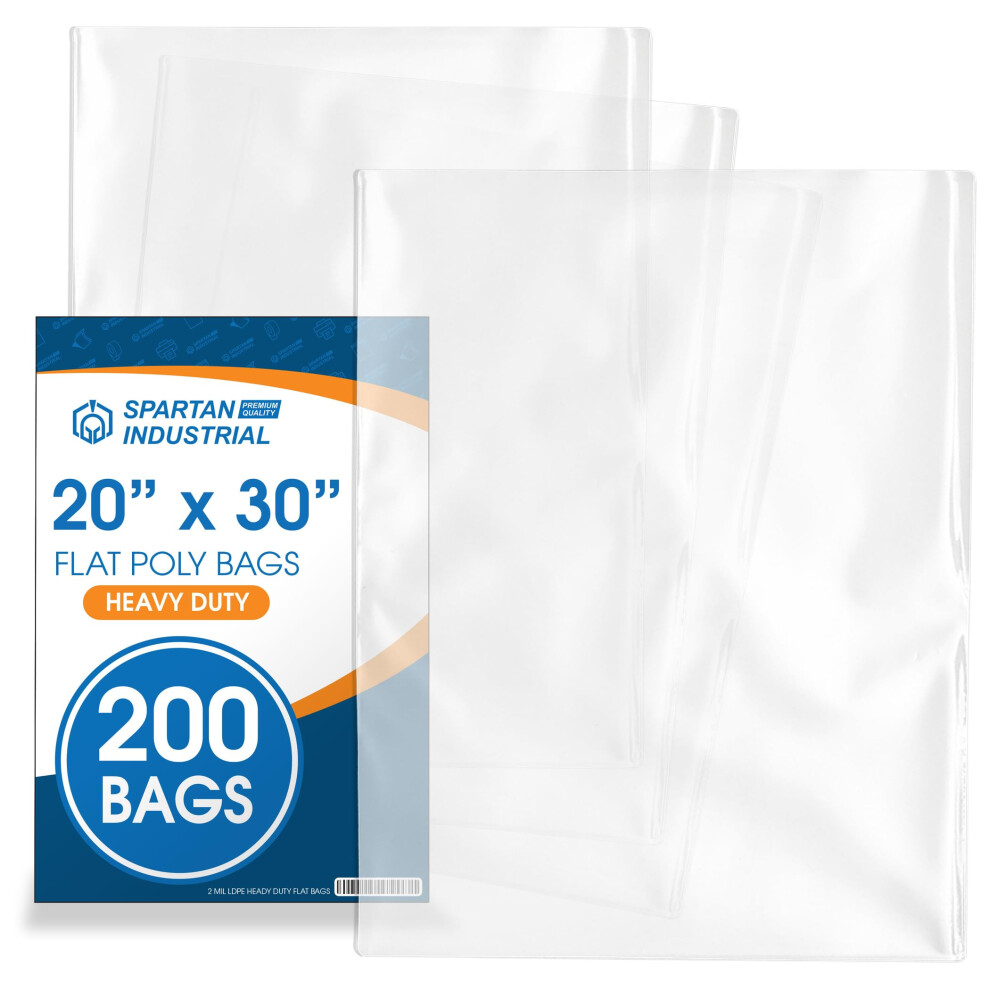 Spartan Industrial - 20"""" X 30"""" Open-End Clear Flat Poly Bags (200 Count) Heavy Duty 2 Mil Plastic for Packaging Bedding Sets Uniforms Home Decor