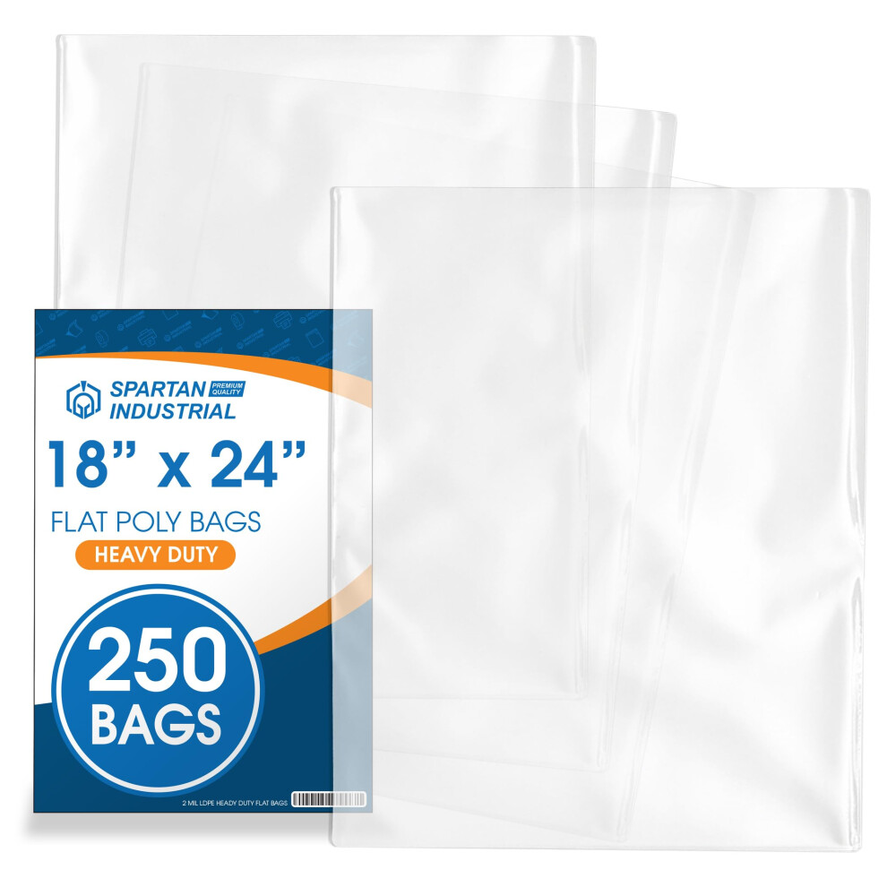 Spartan Industrial - 18 X 24 (250 Count) 2 Mil Heavy Duty Flat Open End Clear Plastic Poly Bags - For Packaging Coats Bedding Backpacks (Bags DO