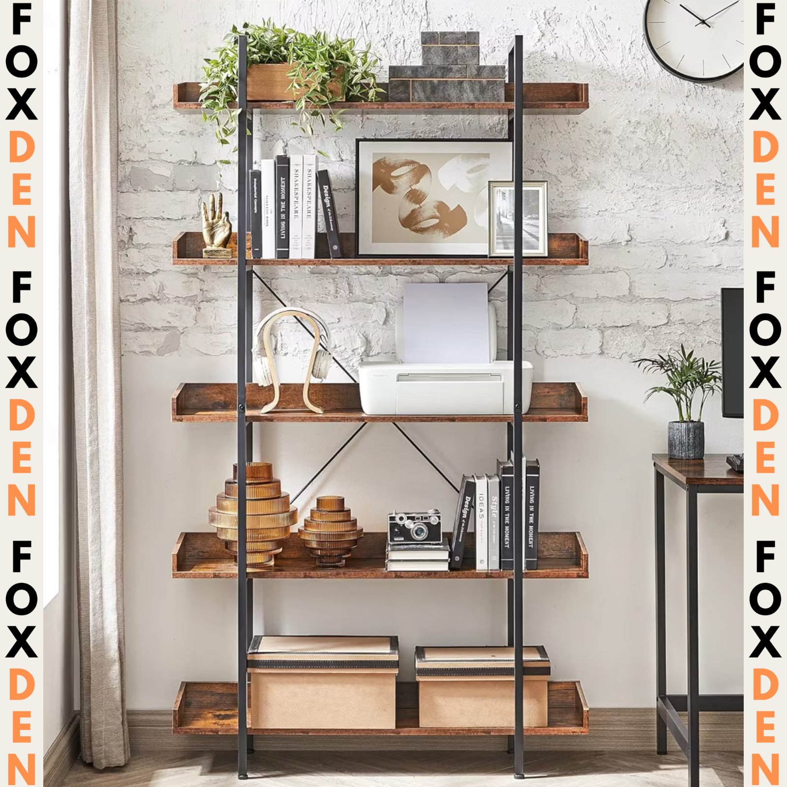 Large Heavy Duty 5 Levels Storage Rack Rustic Industrial Bookshelf Steel Frame