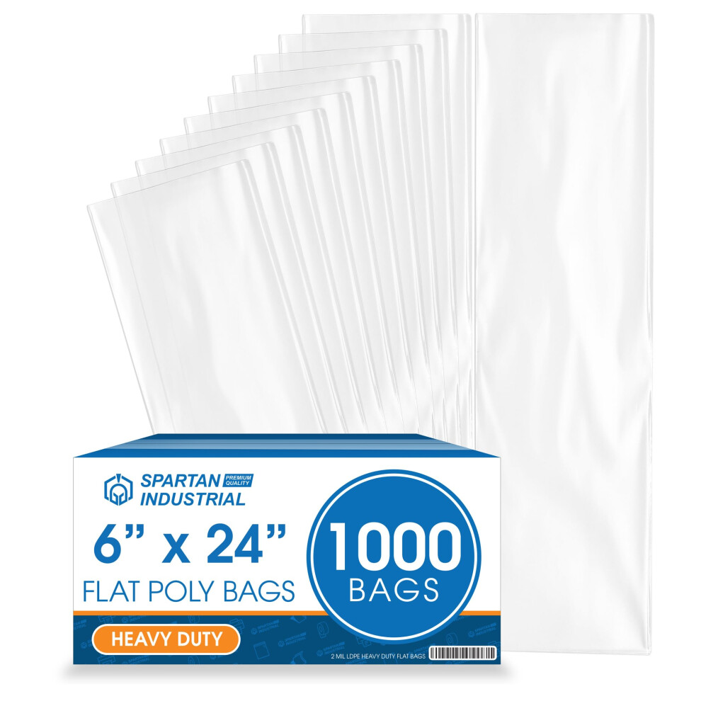 Spartan Industrial - 6 X 24 (1000 Count) 2 Mil Heavy Duty Flat Open End Clear Plastic Poly Bags - For Wigs Posters and More (Bags DO NOT Have Sea