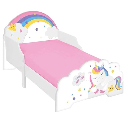 URBNLIVING Wooden Toddler Infant Child Kids Bed with Protector Safety Guard (Unicorn)