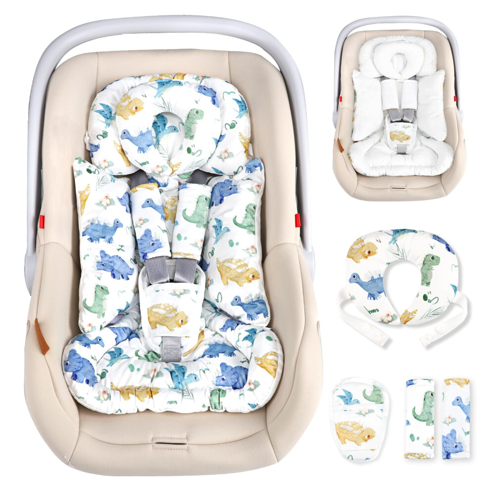 Wedhapy Infant Car Seat Insert Cute Cartoon Dinosaur Stroller Liner for Newborn Breathable Stroller Insert with Pillow for Pushchairs and Buggies