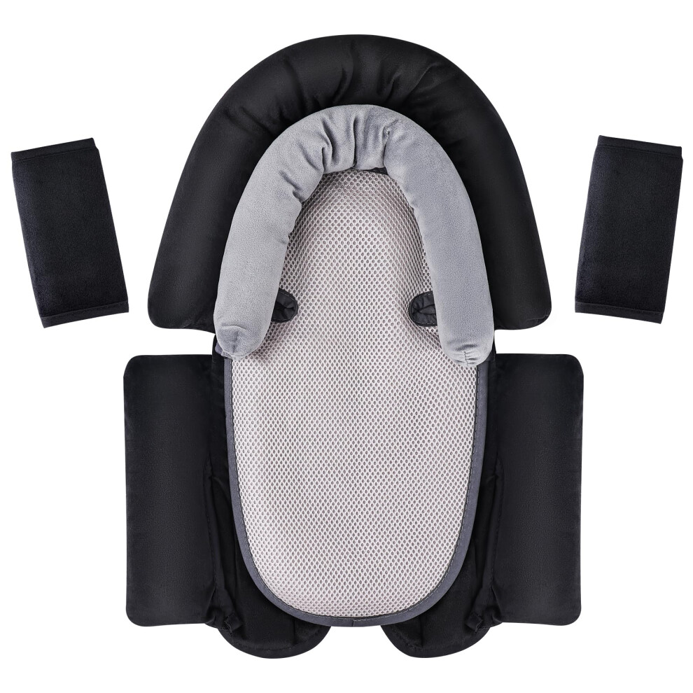Upgraded 2-in-1 Head & Body Supports for Newborn Infant - Extra Soft Breathable Car Seat Insert Cushion Pad, Perfect for Carseat, Buggy, Swing, Bouncer, Black