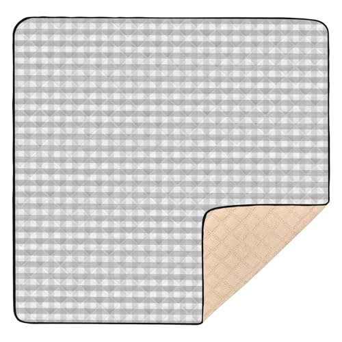SyXIOP Grey Checkered Pattern Cute Baby Play Tummy Time Mat for Floor Portable foldable Infant Play Mat for Newborns Babies Infants Toddlers, 50'' x 50''