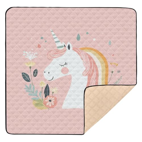 SyXIOP Pastel Rainbow Dreamy unicorns Large Stylish baby girl play mat for Indoor Outdoor One-Piecing foldable Infant Play Mat for Babies Infants Toddlers, 50'' x 50''