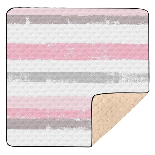 SyXIOP Pink and Light Gray Stripe Pattern Doodle Art_3 Large Sturdy Baby Gym & Activity Mat for Floor Cozy Breathable foldable Infant Play Activity Mat for Newborns Babies Infants Toddlers, 50'' x