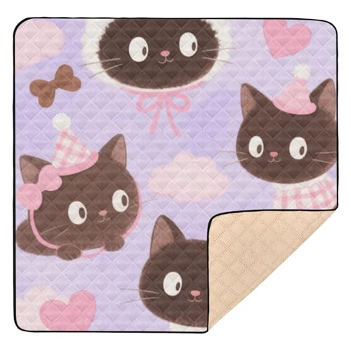 SyXIOP Cute Brown Cartoon Cats Large Non-slip baby play mat activity gym for Floor One-Piecing foldable Infant Play Mat for Baby Kids Toddlers Infants, 50'' x 50''