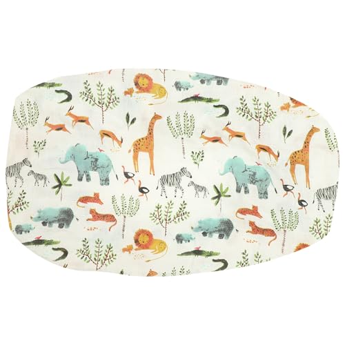 Mikikit Washable Elastic Diaper Changing Pad Cover for Boys, Removable Infant Changing Mat Sheet with Cotton Fabric, Forest Animal Print, Reusable Baby Nursery Bedding Protection