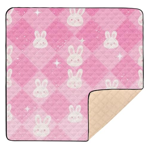 SyXIOP Peach Glitter Rabbits Large Sturdy Baby Play Tummy Time Mat for Indoor Outdoor Comfortable foldable Infant Play Mat for Babies Infants Toddlers, 50'' x 50''