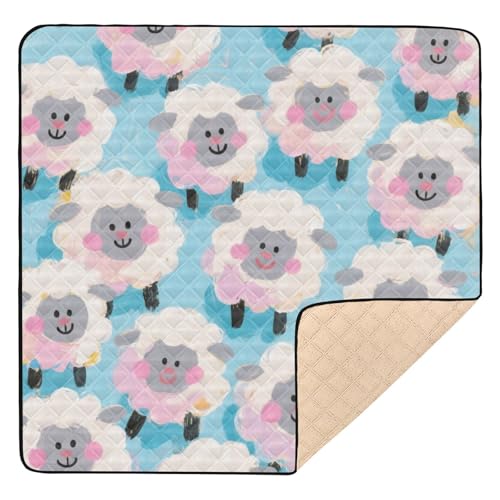 SyXIOP Cute Cartoon White Sheep Large Sturdy mat for baby to play on floor for Indoor Outdoor Waterproof foldable Infant Play Activity Mat Baby Kids Toddlers Infants 50'' x 50''
