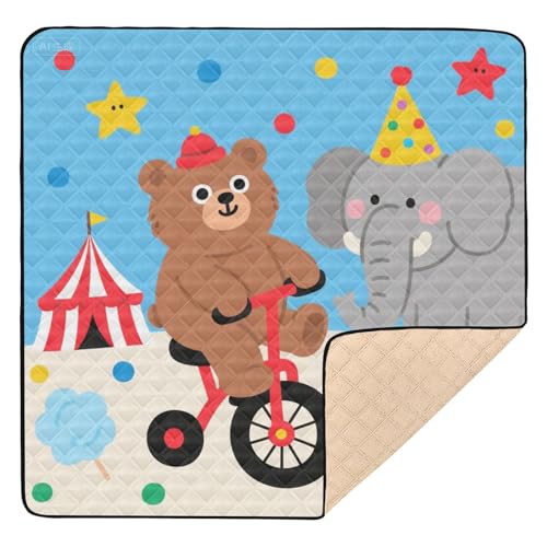 SyXIOP Cartoon Cute Elephants Light Color Soft Foam baby gym play mat for Indoor Outdoor Waterproof foldable Infant Play Activity Mat for Babies Infants Toddlers, 50'' x 50''